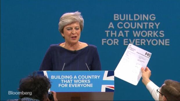 She’s lost her parliamentary majority, her cabinet is squabbling over Brexit -- and a heckler at the Tory party conference handed her a notice to quit.